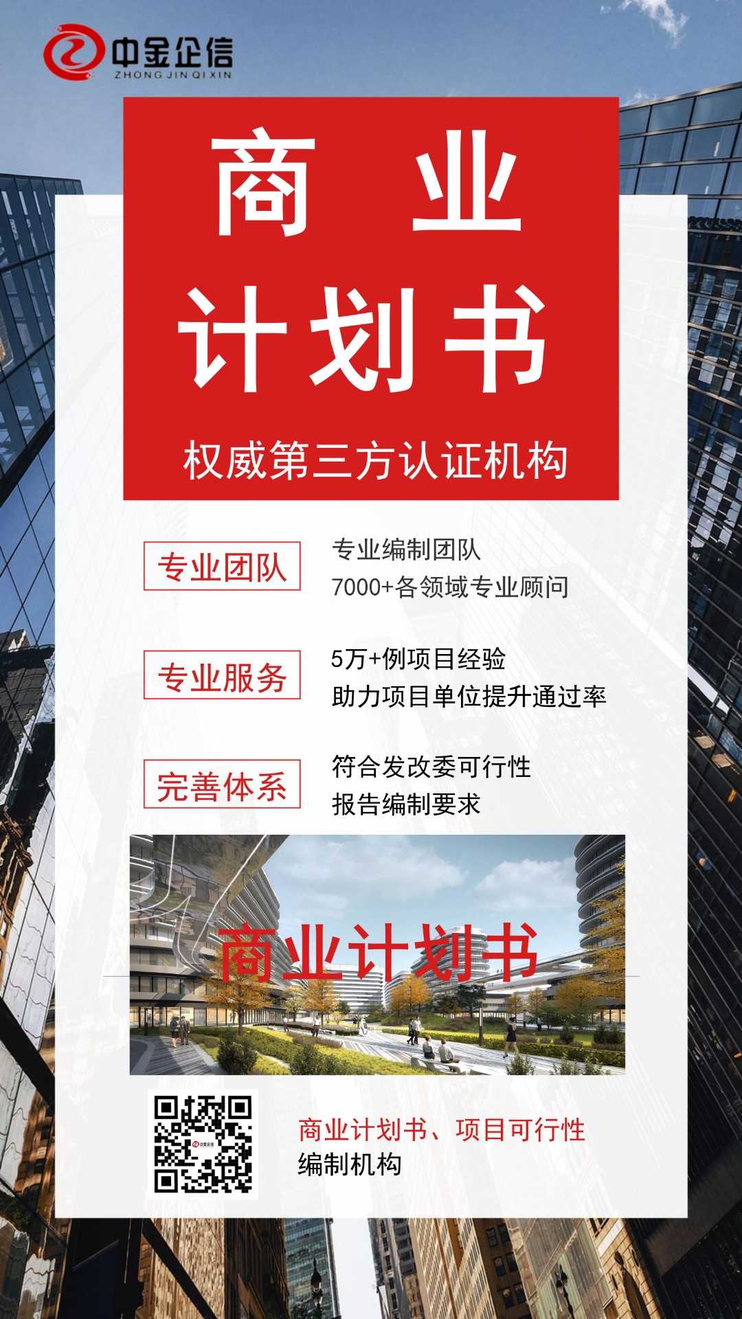 4)项目可行性报告&商业计划书专业权威编制服务机构-中金企信国际咨询:集13年项目编制服务经验为各类项目立项、投融资、商业合作、贷款、批地、并购&合作、投资决策、产业规划、境外投资、战略规划、风险评估等提供项目可行性报告&商业计划书编制、设计、规划、咨询等一站式解决方案。助力项目实施落地、提升项目单位申报项目的通过效率。