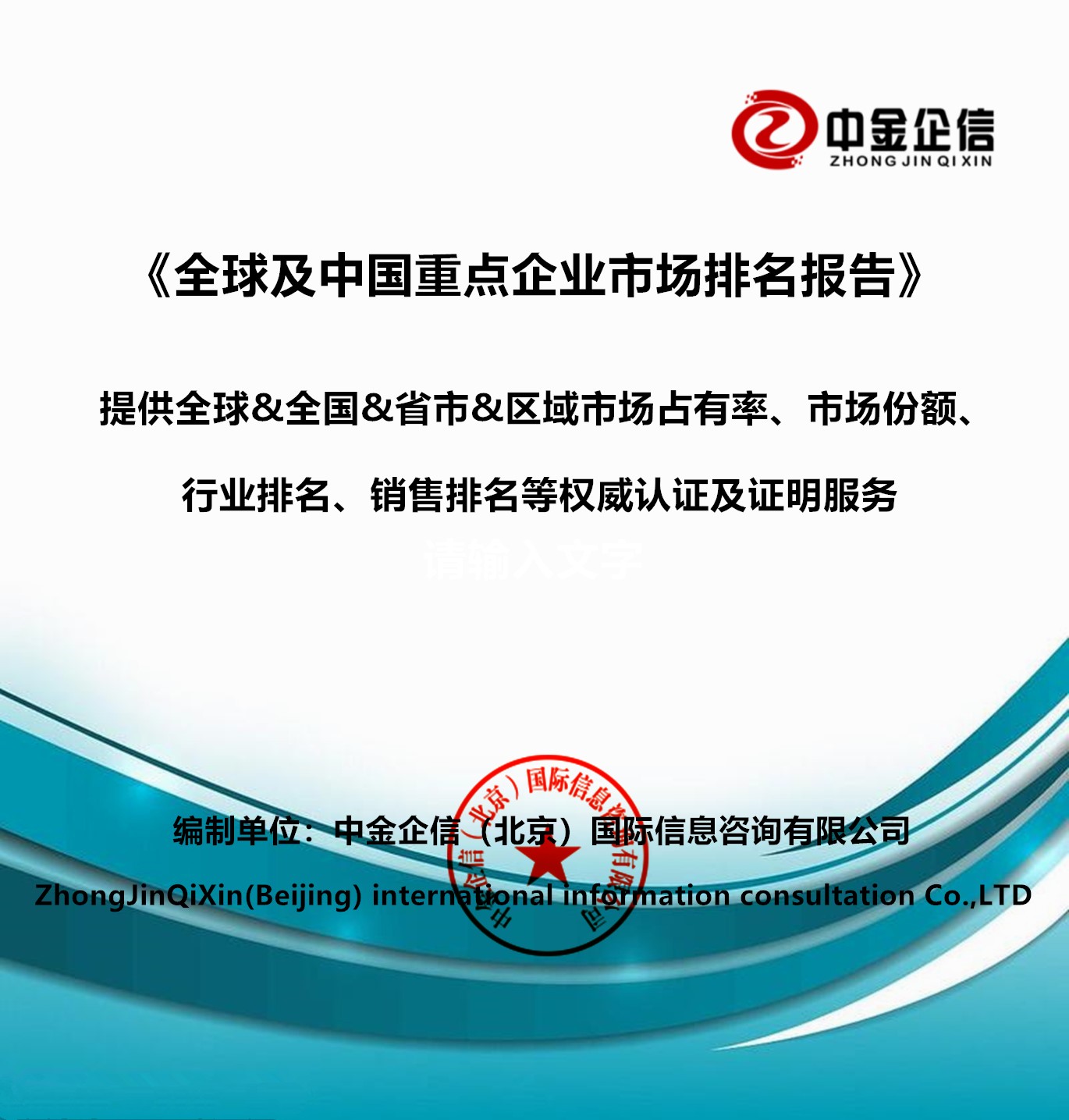 中金企信国际咨询(全称:中金企信(北京)国际信息咨询有限公司)为国家统计局涉外调查许可单位&AAA企业信用认证机构,致力于“为企业战略决策提供市场占有率认证&证明、行业研究报告、市场调查、投资价值评估预测、数据分析、项目可行性&商业计划书等全套解决方案”的专业咨询顾问机构。截止2023年中金企信国际咨询累计完成市场占有率&市场份额认证&证明项目3200+例,专精特新&小巨人认证&单项冠军证明项目2900+例,行业地位&品牌认证&服务项目2000+例,销售排名&领先认证&证明项目1500+例),为2.3万+不同领域企业提供专业、权威的全套解决方案三方认证服务。